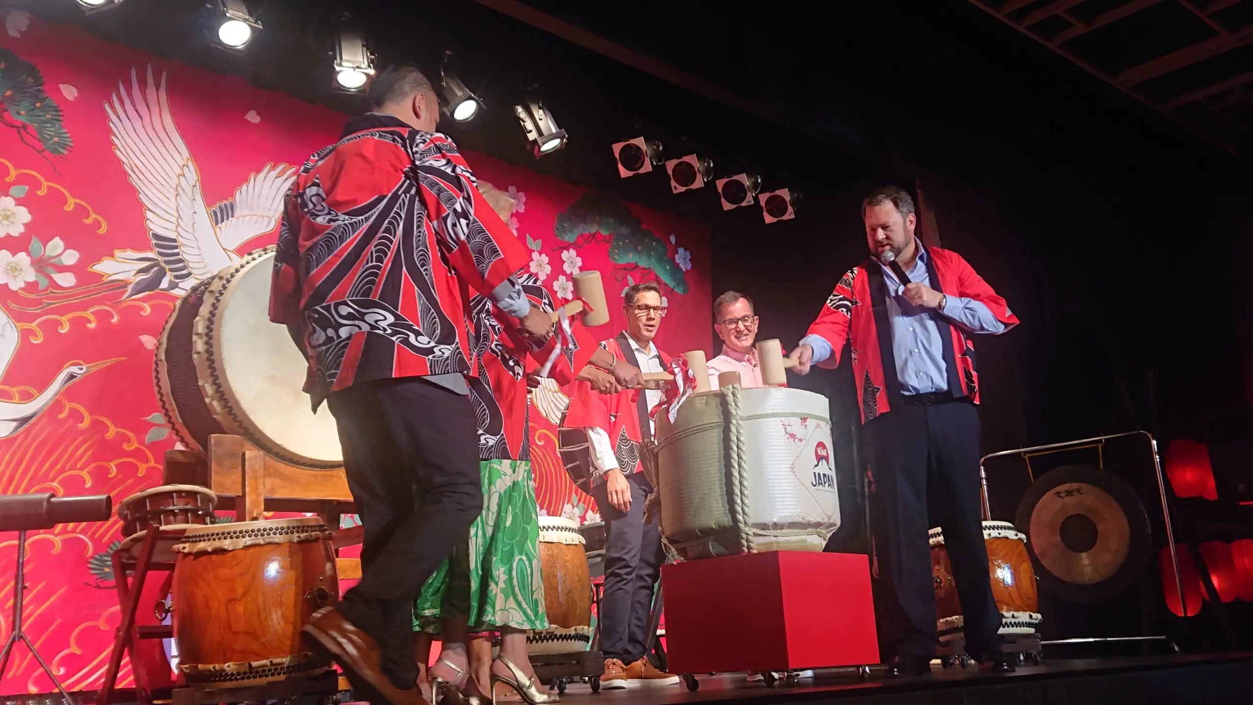 会場では、芸者のお出迎えや琴の生演奏、迫力ある和太鼓パフォーマンスなど、日本文化を体感できる多彩なコンテンツを展開。さらに、デンマーク出身のフラワーアーティスト ニコライ・バーグマン氏による「フラワーバー」を設け、ゲストが自らオリジナルのフラワーボックスを制作できる体験を提供しました。